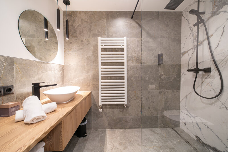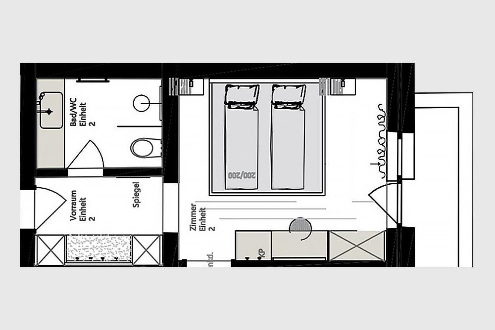 Die Zimmer sind ausgestattet mit Dusche/WC, Vorraum, Balkon, Föhn, Safe, gemütliches 2x2m Boxspringbett, Smart-TV, kostenloses WLAN, Bettwäsche und Handtücher inklusive.